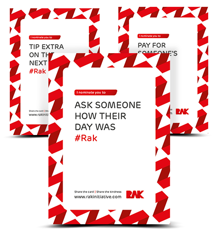 RAK has ‘Random Acts of Kindness’ cards available for free download. You can visit the website and print your selected card, then do the deed on the card and pass it along to someone else so they too can do the act of kindness.